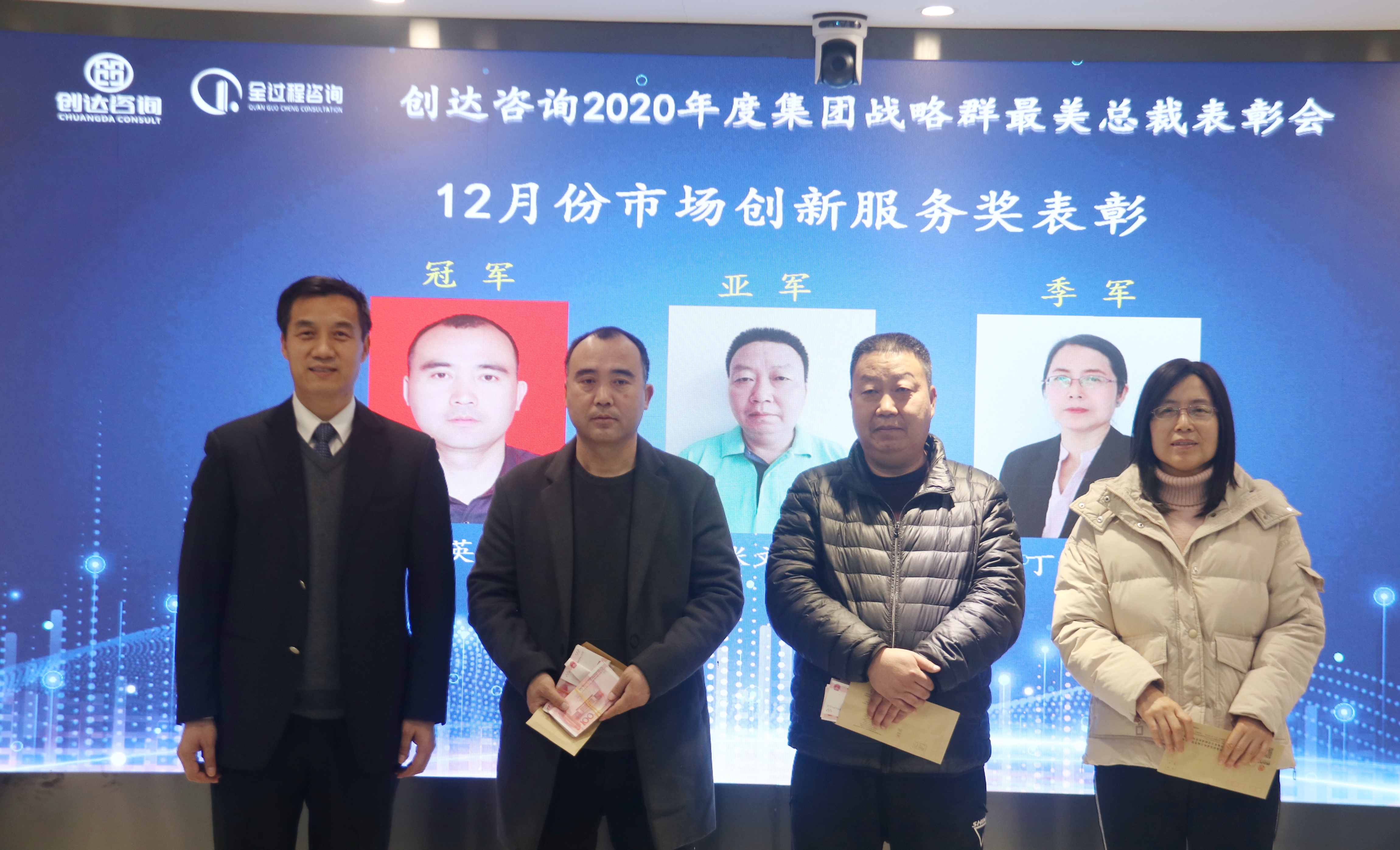 2021年1月23日下午,創達咨詢2020年度集團戰略群最美總裁表彰會在總部召開,公司董事長楊明宇、副總裁葛群、丁東、集團戰略群總裁王偉、各中心負責人、市場群總裁代表、運營群總裁代表及項目群總裁代表參加會議。